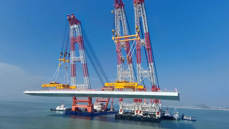 12月20日下午,廈金大橋(廈門段)建設項目迎來重大施工節點,由中國中鐵承建,中鐵大橋局負責吊裝的全橋首榀海上裝配式大節段鋼箱梁吊裝順利完成,本次吊裝采用的吊索具產品均由巨力索具提供。