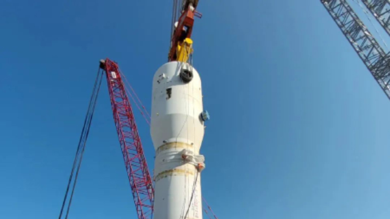 2021年10月19日,由中國核電工程有限公司總承包的第15臺核電機組——“華龍一號”批量化建設漳州核電1號機組反應堆壓力容器安全穩妥吊裝成功,整個吊裝過程中所用的吊具均由巨力索具提供,開創了國內自主三代核電反應堆壓力容器在核島外部翻轉后垂直引入的“華龍新記錄”。
