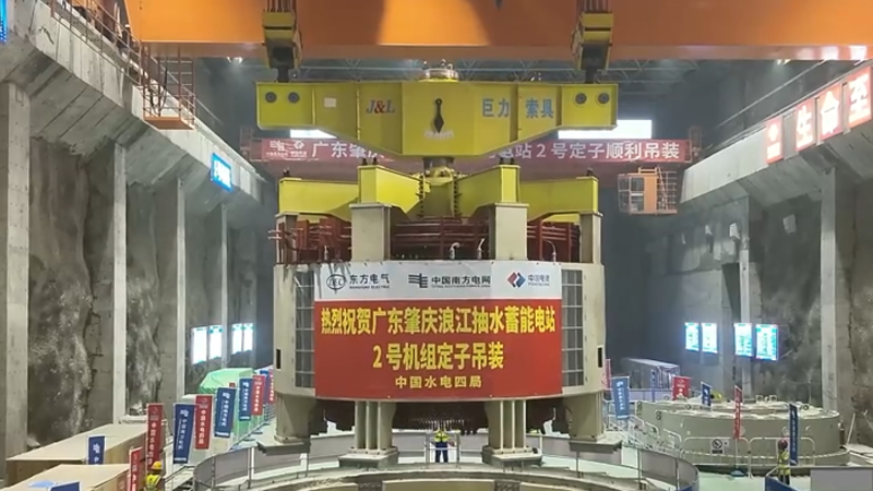 近日,南方電網儲能股份有限公司主導開發的廣東肇慶浪江抽水蓄能電站項目迎來重大工程節點——2 號機組定子一次性精準吊裝就位。本次吊裝任務中,巨力索具自主研發制造的 500T 平衡梁吊具產品作為核心吊裝裝備,為總重達 390 噸的發電機組定子平穩、精準就位提供了全流程可靠保障,助力項目建設邁出關鍵一步。