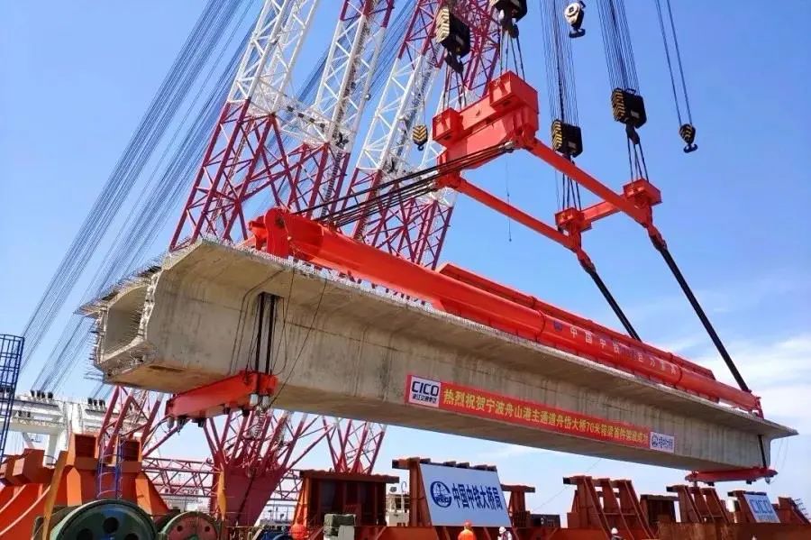 2019年4月18日,寧波舟山港主通道舟岱大橋建設迎來激動人心的時刻:長69米、寬12.55米、重達1800余噸的“巨無霸”箱梁安全、精準地落至大橋NZ24號和NZ25號墩上,該項目專用吊具由巨力索具研發生產。