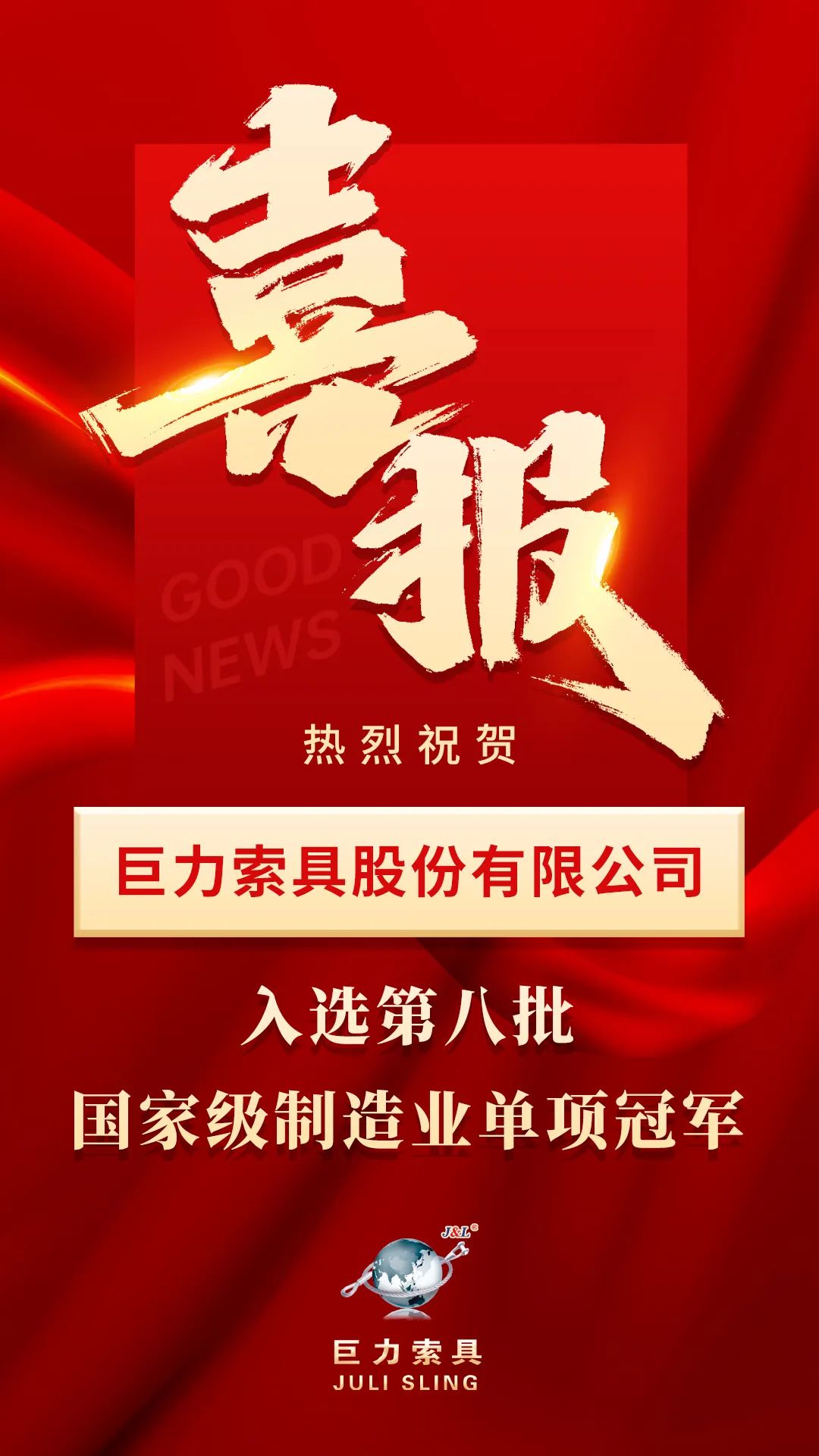 國(guó)家級(jí)榮譽(yù)!巨力索具獲評(píng)國(guó)家級(jí)制造業(yè)單項(xiàng)冠軍企業(yè)