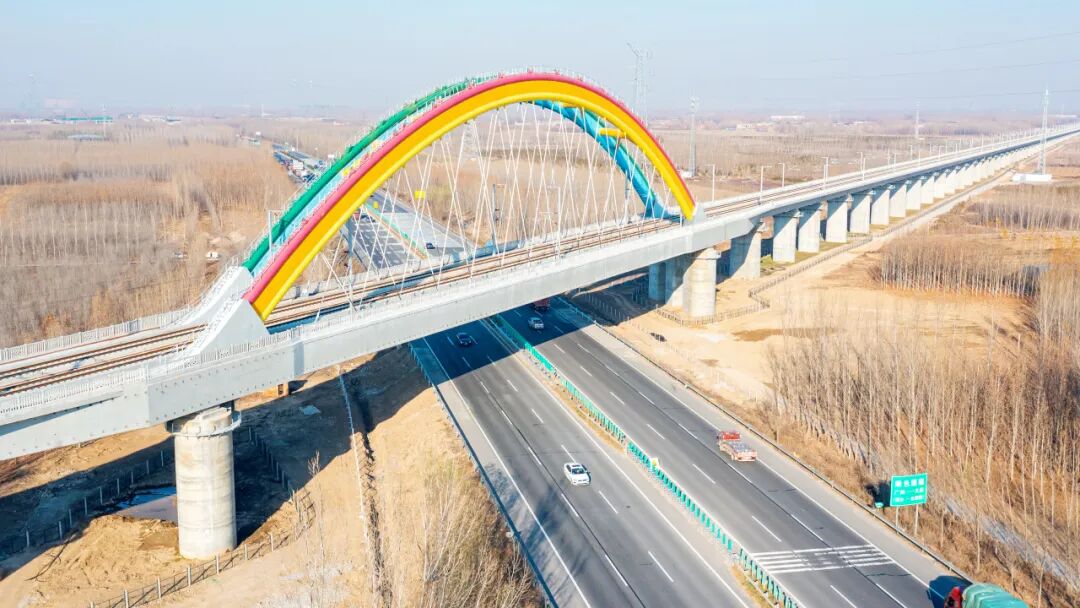 “花式跨越”彩虹橋——京雄城際鐵路跨大廣高速系桿拱橋,是京雄城際鐵路的重要組成部分,對(duì)完善京津冀區(qū)域路網(wǎng)布局、構(gòu)建快速立體式交通體系有重要意義。巨力索具承接該橋上部結(jié)構(gòu)施工。