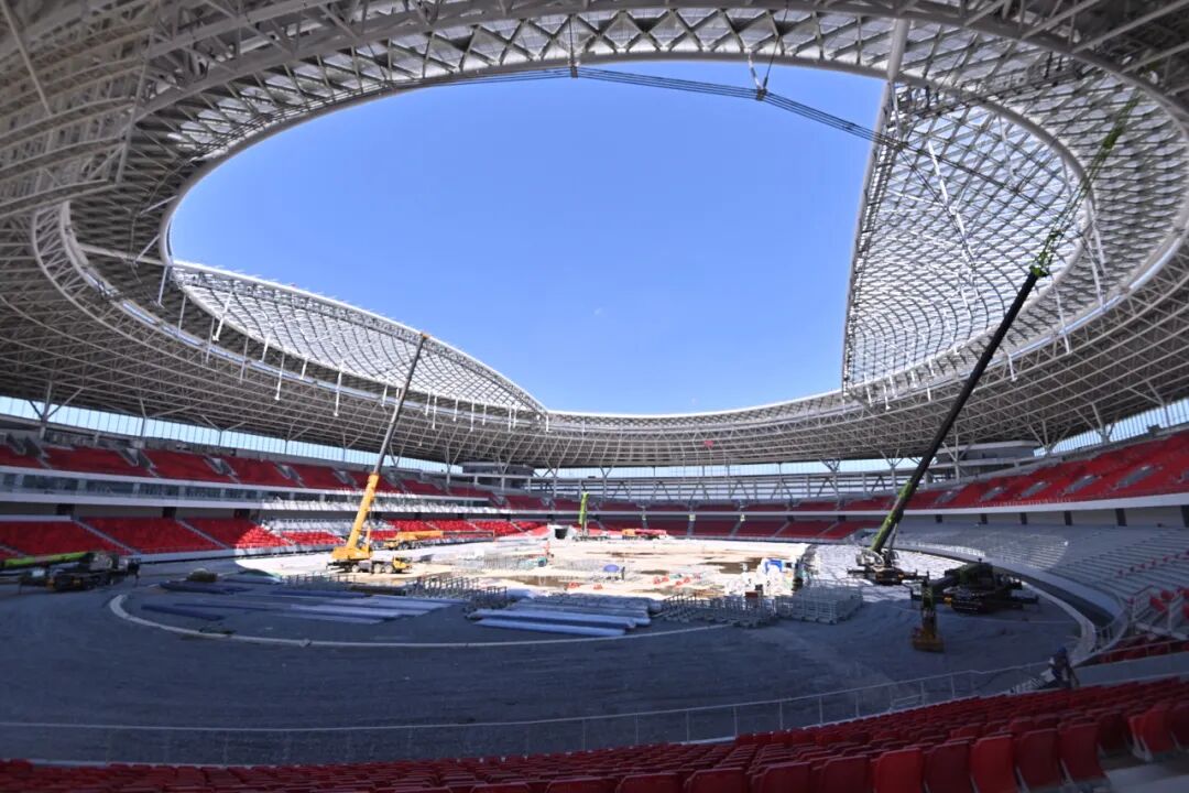 雄安體育中心的建設(shè)不僅注重美學(xué)設(shè)計(jì),更融入了大量科技創(chuàng)新元素。國內(nèi)首創(chuàng)的“輪輻式張弦鋁合金網(wǎng)殼”屋頂體系,將單層網(wǎng)殼與索承張拉技術(shù)相融合,以輕盈之姿承載萬鈞之力。國內(nèi)首創(chuàng)的“漣漪懸索網(wǎng)格結(jié)構(gòu)”,結(jié)合懸索、網(wǎng)格與新型材料技術(shù),不僅實(shí)現(xiàn)了大跨度空間覆蓋,還以獨(dú)特的形態(tài)呼應(yīng)了雄安新區(qū)的生態(tài)理念。