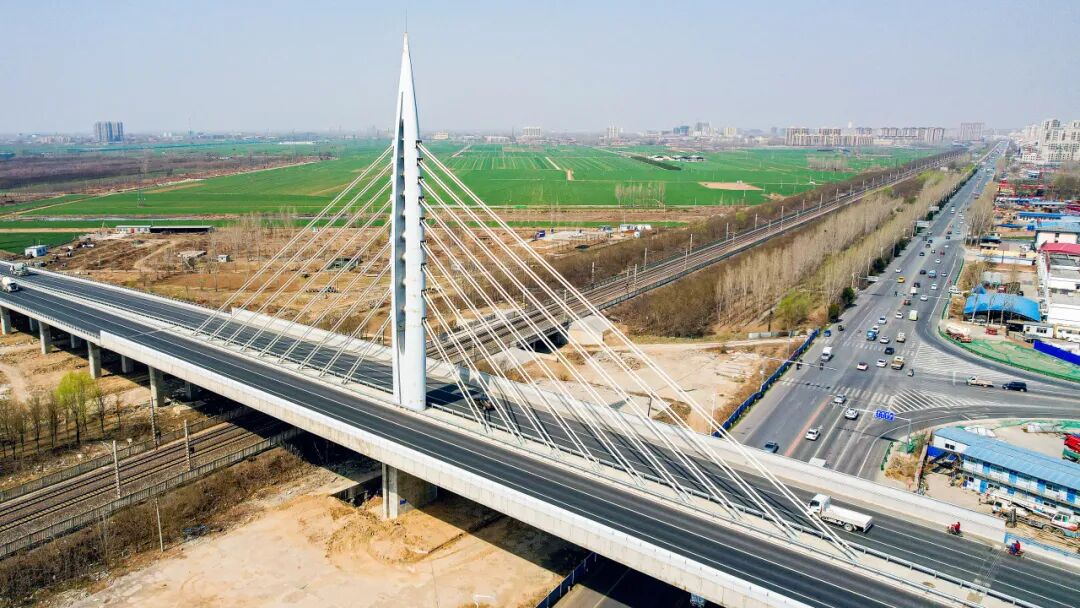 安大線建材通道徐水南外環(huán)與京廣鐵路斜拉轉(zhuǎn)體立交橋是雄安新區(qū)標(biāo)志性工程,能更好地保障雄安新區(qū)建材運(yùn)輸通行能力和服務(wù)功能的發(fā)揮,緩解通往雄安新區(qū)的交通壓力,為過往車輛提供了快捷通暢的交通環(huán)境,從而實(shí)現(xiàn)路網(wǎng)連通、交匯、通達(dá)的集散功能。橋梁主體鋼結(jié)構(gòu)部分和斜拉索全部由巨力索具承接施工。