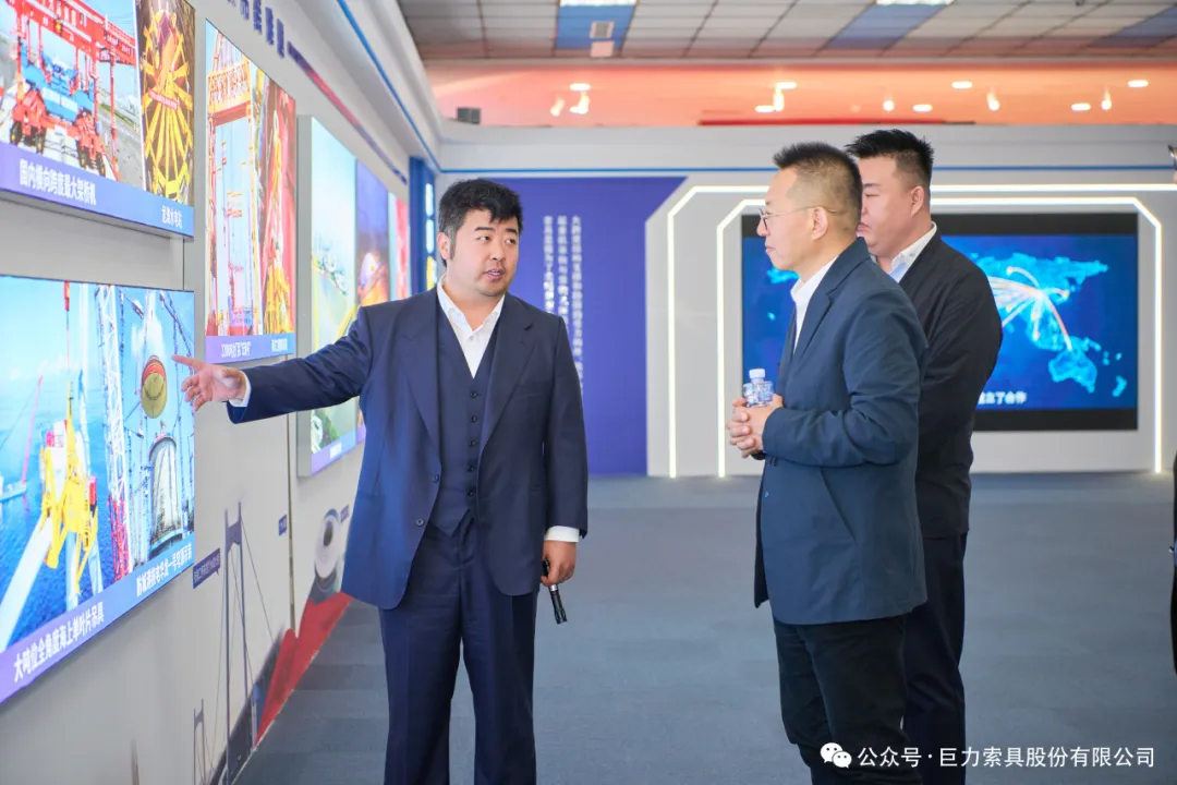 在總裁楊超的陪同下,來(lái)訪領(lǐng)導(dǎo)參觀了巨力索具展廳,全面了解了巨力索具的發(fā)展歷程、技術(shù)創(chuàng)新成果及全球市場(chǎng)布局。展廳內(nèi),大型海洋工程裝備、新能源裝備、空間結(jié)構(gòu)等高端領(lǐng)域的索具應(yīng)用展示,充分彰顯了巨力索具的專業(yè)與實(shí)力。