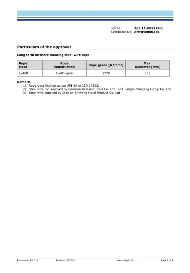 2020年11月,巨力索具取得了永久系泊用單股涂塑鋼絲繩的DNV·GL工廠認(rèn)可證書,成為國內(nèi)首家通過該類鋼絲繩DNV·GL工廠認(rèn)可的廠家。