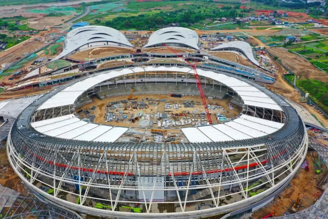 樂山市奧林匹克中心項(xiàng)目位于市中區(qū)蘇稽鎮(zhèn),是2022年四川省第14屆運(yùn)動(dòng)會(huì)主場(chǎng)館。項(xiàng)目建設(shè)內(nèi)容包含“一場(chǎng)三館”,總占地面積約339畝,建筑面積約20.78萬平方米,項(xiàng)目總投資約24.76億元。其中,巨力索具承包屋面索結(jié)構(gòu)的施工。