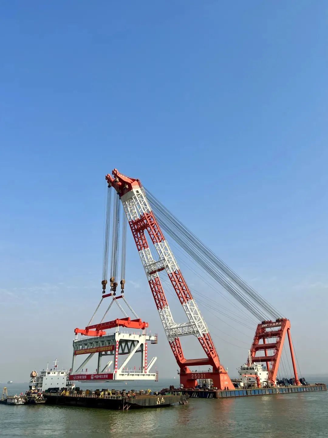 面對施工中高聳支架體系安裝、超高空吊裝、長距離同步拖拉滑移等眾多施工技術難題,加之該地域海工環境復雜,對吊具平衡性、安全性、精準度提出很大挑戰,巨力索具項目團隊在吊具方案設計上,多次與項目部超前籌劃、比選論證專項吊裝施工方案,從吊具結構、材料性能、全橋鋼箱梁兼容性等方面進行優化升級,確保吊裝工作順利進行。