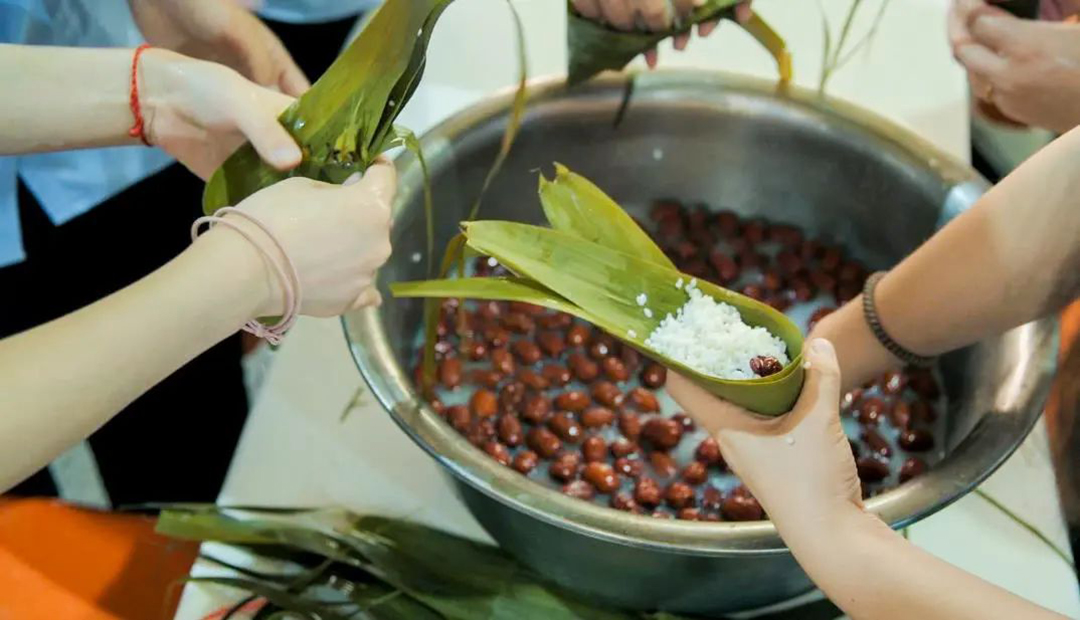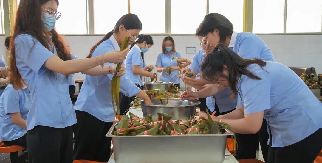 大家邊包粽子邊交流經(jīng)驗,一雙雙靈巧的手把自己對生活的熱愛全都包進了粽子里。不一會兒,一個個胖鼓鼓的粽子便堆成了小山,勞動的成果滿滿地呈現(xiàn)在大家的面前。片片粽葉散發(fā)著清香,粒粒糯米寄托著溫情,濃濃的節(jié)日氣氛拉近了大家的心。